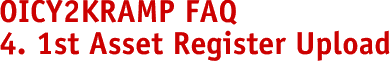 4 UPLOADING 1ST ASSET REGISTER FILE Q1 I get the following message when I try to upload "An unexpected error occurred. Please try again later". A1 There are a number of reasons why this message may appear iYour firewall may not let you send out an FTP file. Ask your systems administrator or with your Firewall consultant to enable your system to send File Transfer Protocol (FTP) files. ii The FTP software capability of OICY2KRAMP may not be compatible with your e-mail software. Send a note to your mentor with your e-mail software description iii The OICY2KRAMP system may be down - check by calling up ramp.org on the Internet to confirm that the site is up and running | ||