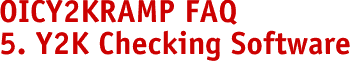 5 RUNNING Y2K CHECKING SOFTWARE Q1 Which software should I use for Y2K checking ? A1 If you want a discount on your Y2K checking software then you can use Millennium Bug Toolkit from Uniwell or TF2000 from Eye-t Technology. Both there companies are members of the OIC Y2K COMPLIANCE CONSORTIUM. A2 If you want to review other software please call up http://www.y2kregister.com.au. This is the Standards Australia web site with nearly all Y2K checking and remediation software listed | ||